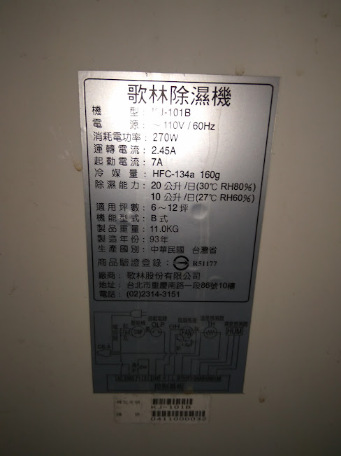 Kolin kj-101b 除濕機壓縮機不會動作不運轉檢測維修修理,控制機板損壞